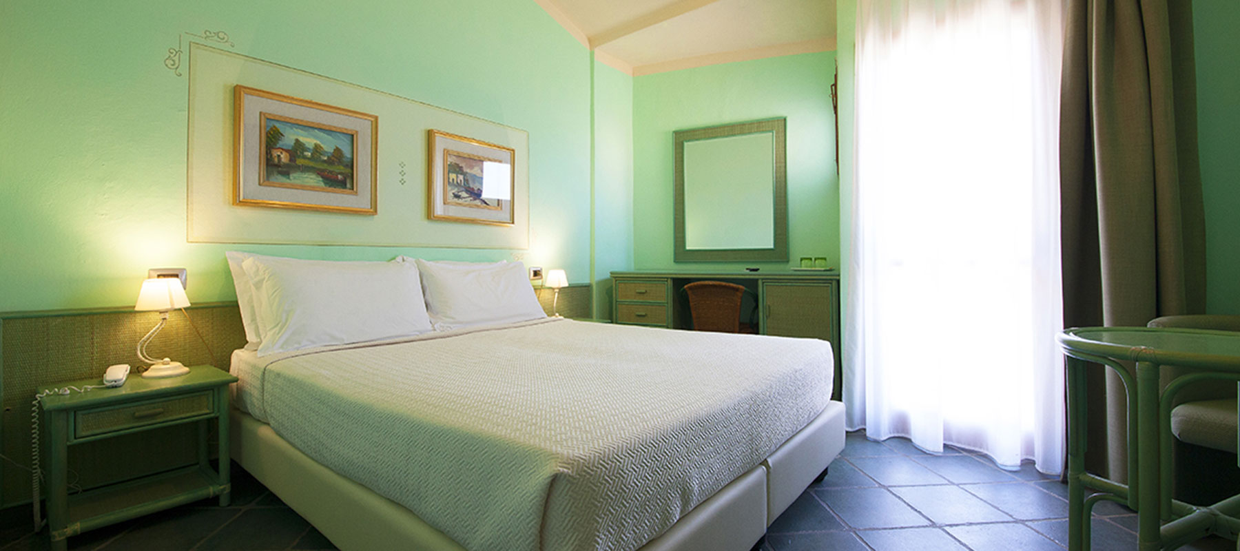 Le Camere Comfort Vista Mare sono camere matrimoniali con terrazza o balcone affacciati sul mare, ideali per chi desidera svegliarsi con la luce e i colori del Golfo di Scaglieri.